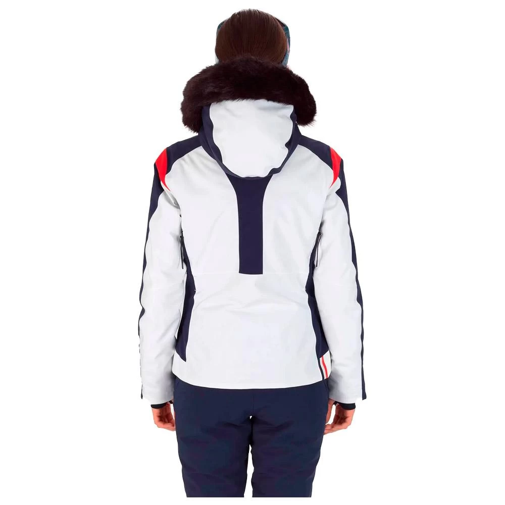 La veste de ski pour femme Rossignol W Aerial offre confort, aisance en mouvement et protection contre les éléments pour des journées de ski réussies. Imperméable et respirante, elle préserve de l’humidité, tandis que l’isolation en Duvet de Faubourg assure un grand confort thermique. Les tissus sont extensibles de manière à vous laisser totalement libre de vos mouvements et la jupe pare-neige s’avère efficace pour empêcher la poudreuse de s’infiltrer sous la veste. Des poches sont intégrées, ainsi qu’une capuche amovible avec fausse fourrure amovible également.