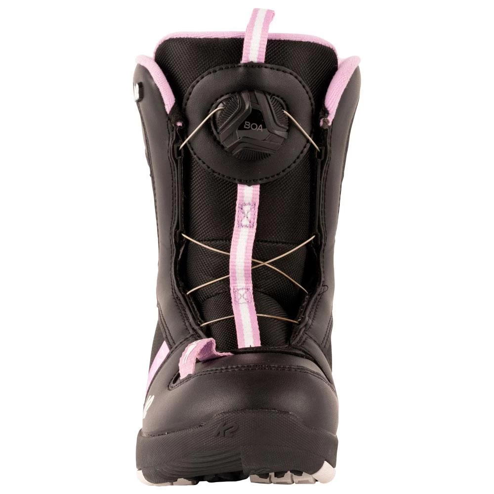 La K2 Lil Kat a tout ce qu’il faut pour débuter le snowboard et profiter des journées en station tranquillement. Elle a même plus, avec sa semelle externe Bright Future équipée d’une lumière LED pour plus de style sur les pistes ! Elle offre du maintien tout en restant très facile à rider grâce à son flex très doux qui permet de trouver les bons appuis facilement. Elle est également facile à utiliser grâce à son serrage BOA qui permet à une enfant de chausser et déchausser rapidement et de manière autonome. La K2 Lil Kat sera parfaite pour accompagner votre petite snowboardeuse en herbe dans ses progrès.