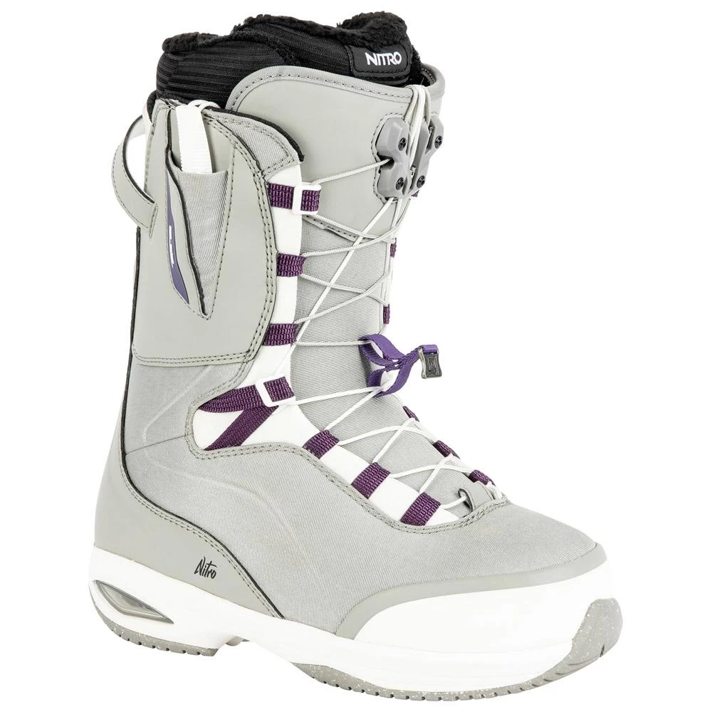 Quelles sont les principales qualités de la boots snowboard Nitro Faint Grey Purple ?