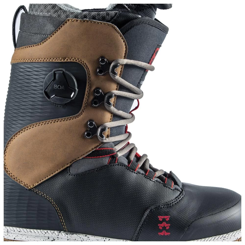 La botte de snowboard Rome Libertine Hybrid Boa Black Brown dispose d’un système de serrage hybride avec à la fois des lacets sur l’avant du pied et un système Boa sur le côté, pour un ajustement précis et un maintien idéal. Le Boa vient serrer le cou-de-pied, tandis que le serrage interne Inner Shell Harness et les renforts SkateCuff 3D viennent améliorer le soutien au niveau de la cheville. Vous obtenez ainsi une chaussure capable de bien verrouiller votre talon contre la semelle, pour un sentiment de contrôle permanent et une bonne précision sur la neige. La botte garde tout de même un peu de flex sur l’avant pour apporter du confort en freestyle. Lorsqu’elle n’est pas sur votre planche de snowboard, la Libertine Hybrid Boa Black Brown offre un certain confort de marche grâce à la semelle adhérente Gripflex.