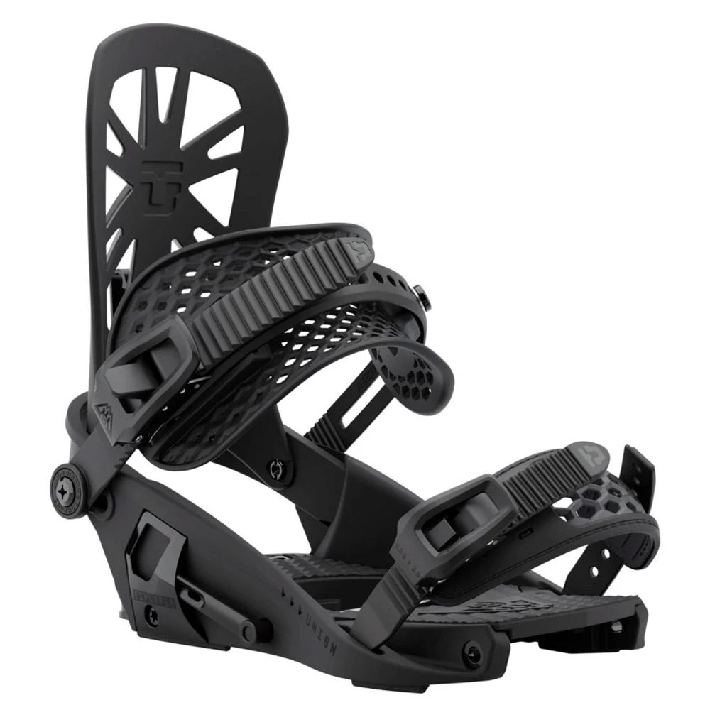 L’Explorer est la fixation développée spécifiquement par Union pour le splitboard. Elle se distingue par son embase en nylon offrant plus de tolérance et de confort de ride, là où d’autres marques comme Plum ou Karakoram misent sur des embases en aluminium, plus rigides. Le spoiler et les straps offrent du soutien toute restant agréable à rider, donc l’ensemble est bien équilibré entre performance et accessibilité. C’est une fixation avec laquelle on va pouvoir aussi bien mettre du rythme dans la descente qu’enchaîner les virages à la cool. Le passage du mode rando au mode descente se fait par un système de goupille. C’est une bonne fixation pour découvrir le splitboard, mais moins adaptée que d’autres modèles pour une pratique approfondie sur des longues sorties en haute montagne.