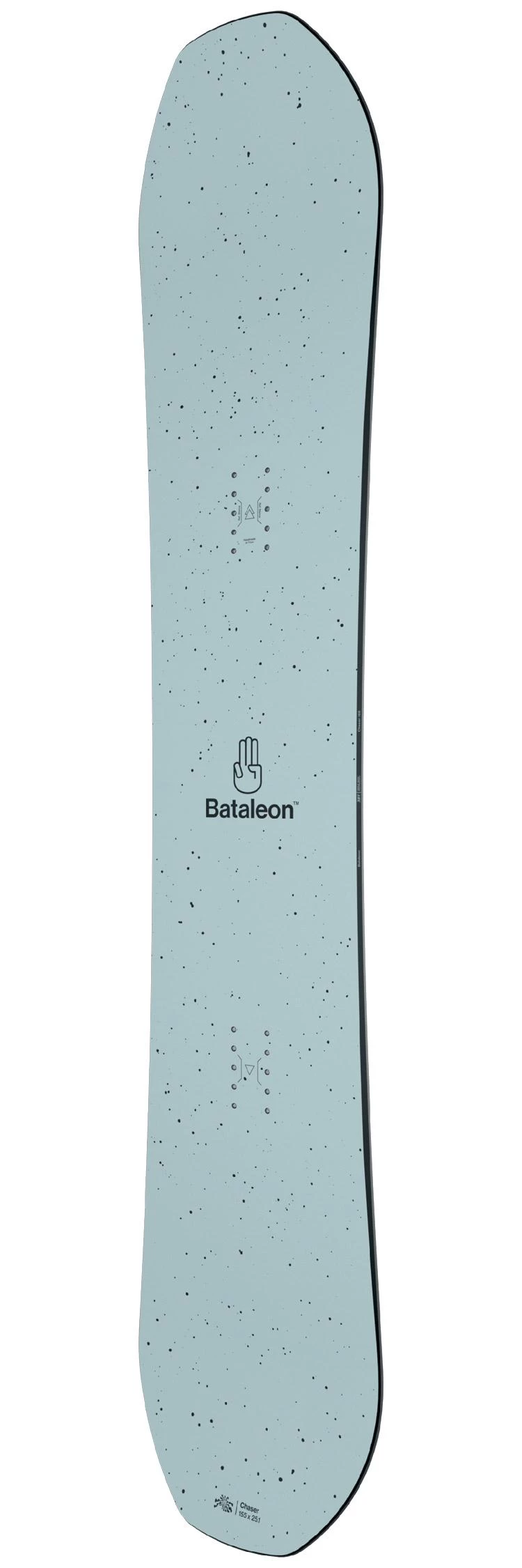 Avec un noyau peuplier et hêtre renforcé par de la fibre de verre, la Chaser offre pop et rebond en sortie de courbe. Pour l’accroche sur neige dure, vous pouvez compter sur le léger cambre classique, il reste peu exigeant en termes de technique pour ne pas vous pousser à la faute. La position un peu reculée améliore la déjauge et facilite les déclenchements de virages, tout comme les spatules concaves 3BT qui rendent la board encore plus agréable. La Bataleon Chaser vous permet de rider à votre rythme dans toute la station mais aussi de faire du freestyle, notamment grâce à sa forme symétrique qui permet de rider facilement en switch.
