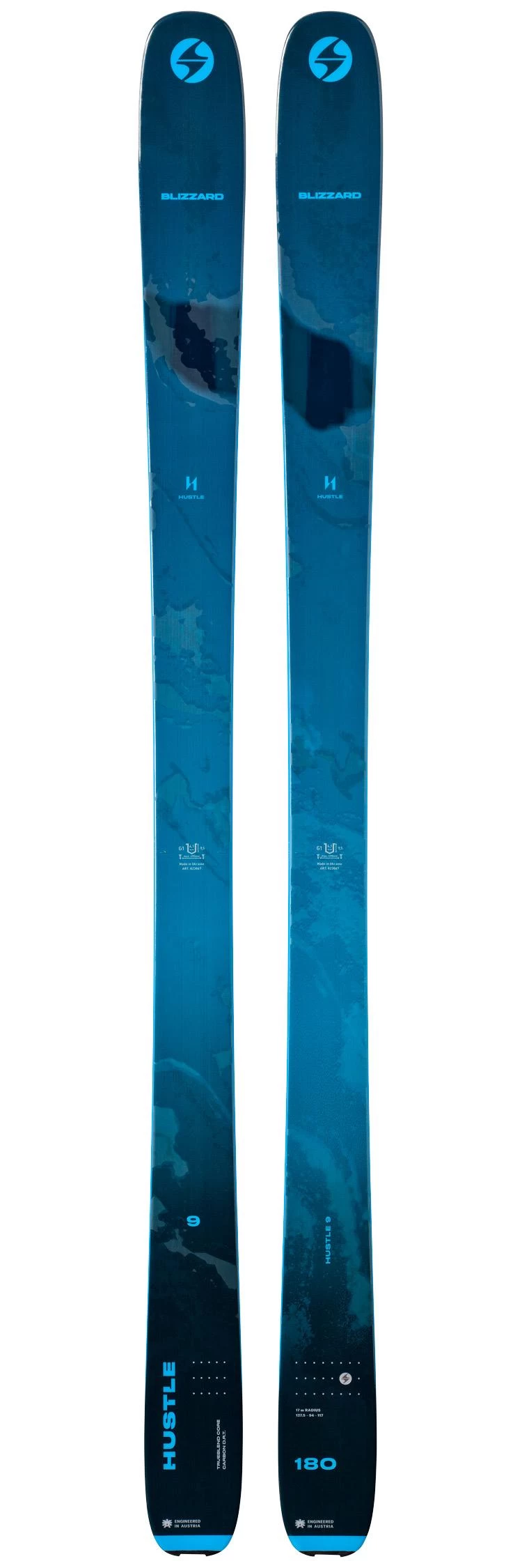 L’Hustle 9 est le ski le plus fin de la gamme de skis de freerando Blizzard Hustle. Cette gamme profite de la construction Trueblend Free Woodcore, un noyau bois composé de peuplier, de paulownia et d’hêtre, offrant un flex intermédiaire et un maximum de légèreté. Ainsi, malgré ses 95 mm au patin, l’Hustle 9 ne pèse que 1 780 grammes par ski (en taille 180 cm).