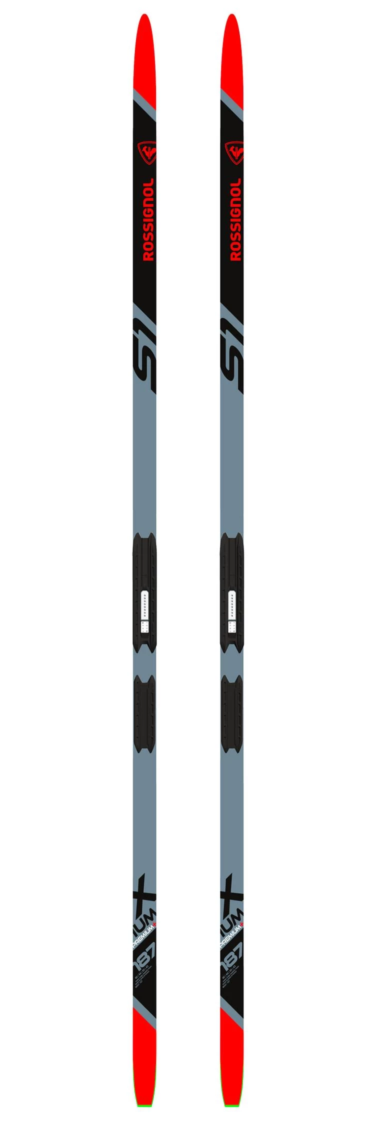 Pour débuter, il est important de préciser que même si la construction du ski est identique au S2 en termes de noyau et de structure externe, le S1 est par contre très différent au niveau du cambre et de la semelle. Pour ce qui est du noyau du ski, c’est sur du nid d’abeille Nomex et d’enrobage de carbone que Rossignol s’appuie, comme sur tous les skis de la gamme X-IUM Premium. Ce qui le différencie c’est son cambre, plus court que celui du S2, il se veut plus doux sur neige fraîche et sèche ou sur neige à canon très froide. La spatule se dégage plus facilement sur fond moux ce qui permet de ne pas dépenser d’énergie à la relever. Le talon est quant à lui un peu plus agressif afin de ne pas « savonner » sur ces neiges fuyantes. La semelle K 9000 avec structure froide est parfaitement adaptée à ces conditions, ce qui fait de lui une machine de glisse là où des skis plus polyvalents seraient collés. Pour ce qui est de la structure externe, Le Premium a été totalement repensé, exit la dernière couche qui alourdissait le ski, il en résulte un nouvel équilibre et une spatule plus légère avec un meilleur comportement en fin de poussée. Pour le système de plaques, c’est évidemment du IFP pour fixations Turnamic. Ces fixations sont adaptées aux standards de chaussures NNN, Prolink et Turnamic.